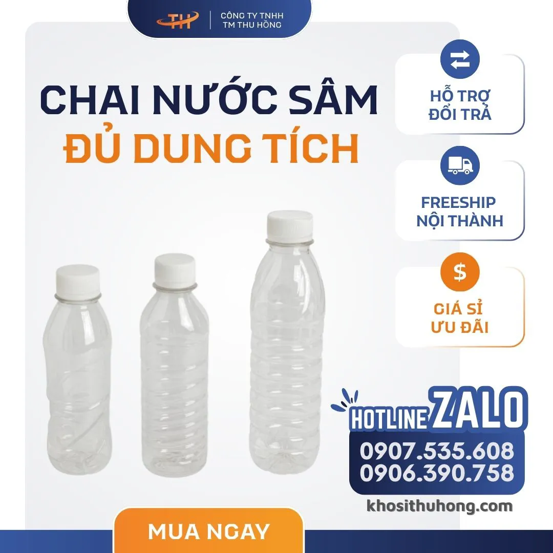 Nếu bạn đang tìm mua chai nhựa PET đựng nước sâm dung tích 330ml – 500ml bền đẹp, an toàn, giá sỉ tốt, hãy liên hệ ngay với Thu Hồng để được tư vấn chi tiết và báo giá nhanh chóng.