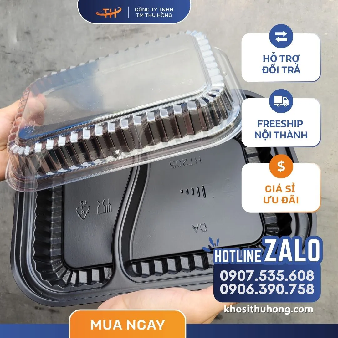 Mua sỉ hộp nhựa đế đen HT205 2 ngăn tại Kho Sỉ Thu Hồng