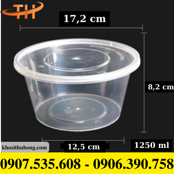 - Hộp nhựa tròn 1250ml với thiết kế tròn, dung tích lớn, rộng rãi, có nắp đậy chắc chắn, rộng rãi, không lo bị tràn