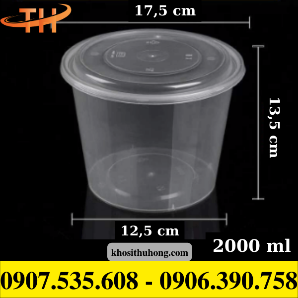 - Hộp nhựa tròn 2000ml không mùi, không tiết ra chất độc hại, nắp vặn chắc chắn, chống tràn hiệu quả