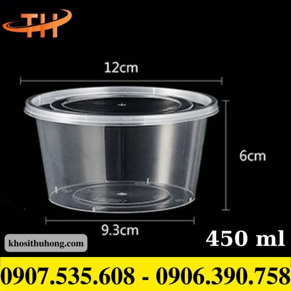 - Hộp nhựa tròn 450ml có khả năng chịu nhiệt tốt, dùng được trong lò vi sóng, đựng được thức ăn nóng và lạnh.