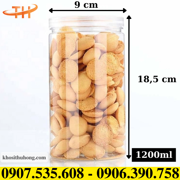 - Hũ pet nắp nhựa 1200ml chuyên dùng để đựng các loại thực phẩm như hoa trà, bánh mứt, matcha, nghệ viên, ô mai, kem mỹ phẩm, các loại hạt khô,...