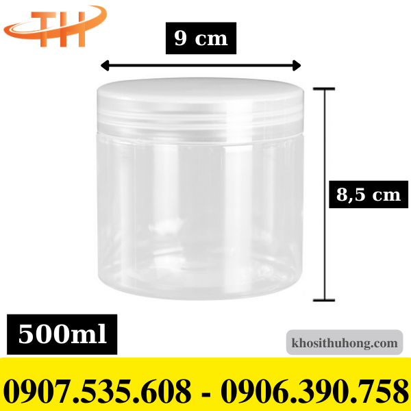 - Hũ pet nắp nhựa 500ml chuyên dùng để đựng bánh kẹo, mứt, các loại hạt, hoa quả sấy khô, muối, bột, mỹ phẩm,...