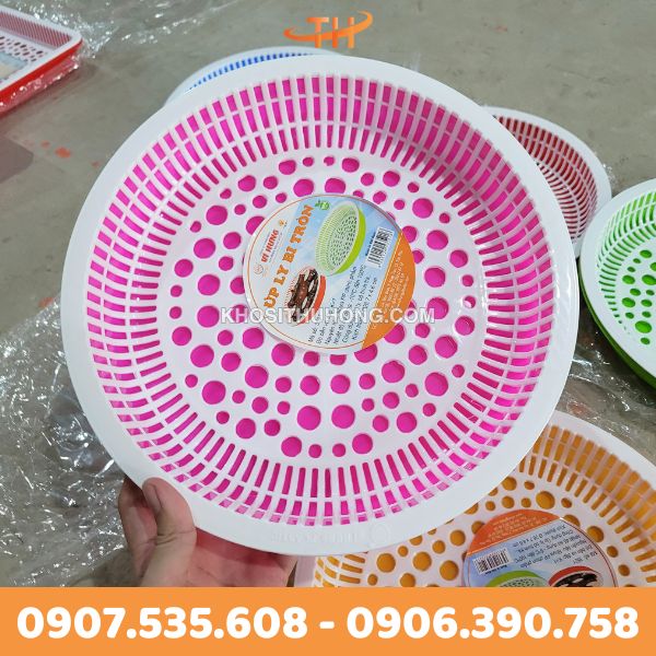 Khay úp ly bi tròn có sẵn nhiều màu sắc như cam, xanh dương đậm, đỏ, hồng đậm, xanh lá và vàng, cùng hai kích cỡ vừa và lớn, đáp ứng nhu cầu sử dụng đa dạng. Ngoài tính năng úp ly, sản phẩm còn giúp tiết kiệm thời gian dọn dẹp và giảm thiểu công việc vệ sinh, tạo sự ngăn nắp cho không gian. Với khả năng sử dụng trong nhiệt độ từ -10 độ C đến 100 độ C, khay rất lý tưởng cho các nhà hàng, quán ăn hoặc các buổi tiệc tại nhà.