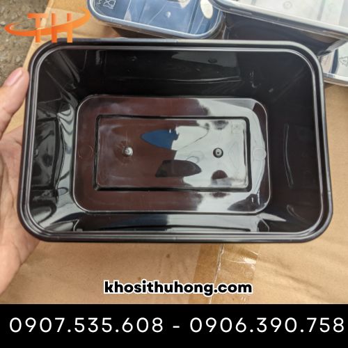 Video hộp nhựa chữ nhật đựng thực phẩm màu đen 750ml